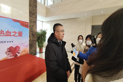 ? ? ? ? 在活動(dòng)啟動(dòng)儀式結(jié)束之后,參加活動(dòng)的一行領(lǐng)導(dǎo)共同到采血車上看望、慰問了正在獻(xiàn)血的員工,向他們獻(xiàn)花表達(dá)敬意和感謝。之后,王鵬里書記,楊向榮總經(jīng)理分別接受了參加活動(dòng)的省、市新聞媒體記者的集體采訪。