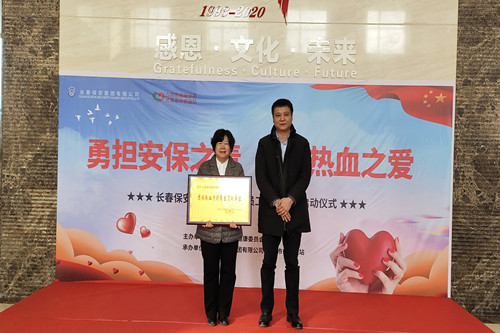 ? ? ? ? 在儀式上,長(zhǎng)春市衛(wèi)健委副主任范金明代表長(zhǎng)春市人民政府獻(xiàn)血工作領(lǐng)導(dǎo)小組辦公室為長(zhǎng)春保安集團(tuán)頒發(fā)“獻(xiàn)血特別突出貢獻(xiàn)單位”獎(jiǎng)牌 。長(zhǎng)春保安集團(tuán)總經(jīng)理?xiàng)钕驑s上臺(tái)接受獎(jiǎng)牌之后,宣布“勇?lián)脖V?zé),奉獻(xiàn)熱血之愛”集體獻(xiàn)血活動(dòng)正式開始。全體獻(xiàn)血員工在集團(tuán)行政辦公室工作人員的組織下,開始有序到??吭诩瘓F(tuán)廣場(chǎng)上的長(zhǎng)春市中心血站五輛采血車上進(jìn)行獻(xiàn)血。