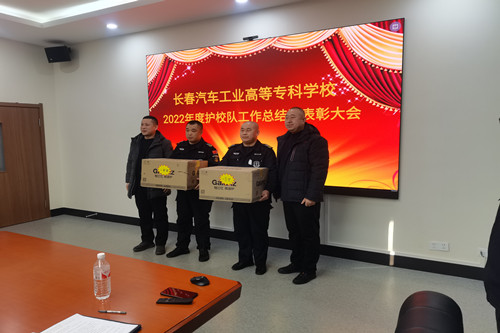 2023年1月11日上午,長春汽車工業(yè)高等專科學(xué)校召開了2022年度護(hù)校隊工作總結(jié)暨表彰大會。長春汽車工業(yè)高等專科學(xué)校保衛(wèi)處處長李明東、科長段志偉,長春保安集團(tuán)文教大隊大隊長谷建國、駐勤中隊長梁法軍,全體駐勤保安員參加了會議。