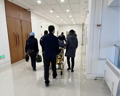 就在醫(yī)生對發(fā)病男子進(jìn)行初步救治時,呂偉和其他保安隊員已經(jīng)開始著手安排下樓的相關(guān)事宜了。電梯口、轉(zhuǎn)彎處、大門口,保安員在途經(jīng)路線做好了守護(hù)和安全指引,同時提前打開了一樓大門,由保安員在此值守,確保接應(yīng)順暢。不多時,救援人員抬著擔(dān)架,一路暢通的到達(dá)了一樓,將患者及時轉(zhuǎn)運送醫(yī)。