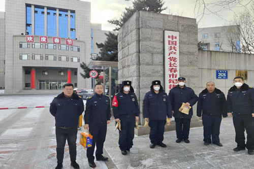 ? ? 2023年1月21日是大年除夕。大眾卓越控股集團(tuán)總裁助理、長(zhǎng)春保安集團(tuán)總經(jīng)理?xiàng)钕驑s,長(zhǎng)春保安集團(tuán)常務(wù)副總經(jīng)理范勝田,總經(jīng)理助理、人力資源總監(jiān)張旭等高管赴駐一汽集團(tuán)總部(NBD)、一汽紅旗轎車(chē)、長(zhǎng)春市軌道交通等保安執(zhí)勤崗親切看望、慰問(wèn)節(jié)日期間仍然堅(jiān)守在工作崗位上的一線保安員們,向他們致以新春的祝福。