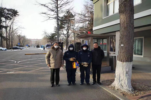 ? ? ? ?在看望、慰問(wèn)保安員時(shí),楊向榮首先代表集團(tuán)董事長(zhǎng)朱海峰、分管高級(jí)副總裁魏景鑫給在過(guò)年仍然堅(jiān)守崗位、履行職責(zé)的保安員們拜年!向他們表示崇高的敬意和誠(chéng)摯的感謝!請(qǐng)他們轉(zhuǎn)達(dá)對(duì)家人的親切問(wèn)候!她詳細(xì)了解了他們的工作情況和節(jié)日排班、倒班情況,工作任務(wù)及職責(zé)。親切的囑咐他們一定不能粗心大意,要加強(qiáng)疫情防控,做好個(gè)人防護(hù),注意個(gè)人身體健康。同時(shí)強(qiáng)調(diào),新春佳節(jié)、辭舊迎新,在這個(gè)特殊的時(shí)間節(jié)點(diǎn),客戶(hù)單位都已經(jīng)放假,把單位安全交給了駐勤保安員們,大家一定加倍提高警惕,注意安全防范,做好治安防范和火災(zāi)等各類(lèi)災(zāi)害事故防范,保護(hù)好客戶(hù)單位安全,這不僅是我們誠(chéng)信履行保安合同的具體體現(xiàn),也是協(xié)助公安機(jī)關(guān)加強(qiáng)春節(jié)期間維穩(wěn)處突的重要責(zé)任。協(xié)助省、市公安機(jī)關(guān)維穩(wěn)處突,加強(qiáng)社會(huì)面管控,確保全市人民過(guò)上一個(gè)歡樂(lè)、祥和的春節(jié),是長(zhǎng)春保安集團(tuán)的重要社會(huì)責(zé)任和義務(wù)。各級(jí)管理干部和全體保安員到任何時(shí)候都不要忘記這個(gè)重要責(zé)任和使命,要勇于擔(dān)當(dāng),主動(dòng)作為。